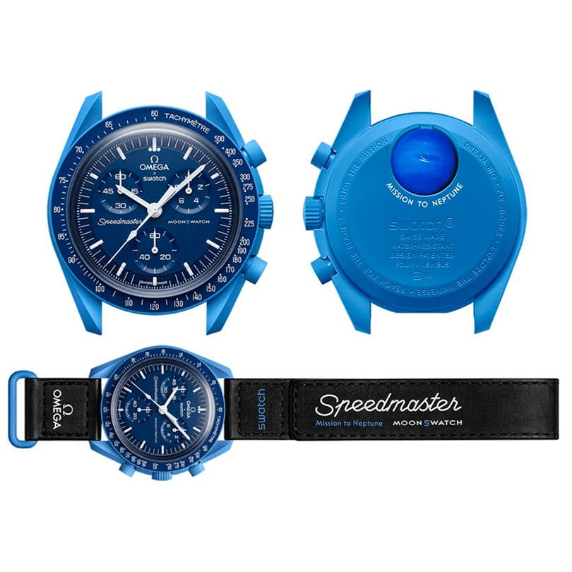 Швейцарские мужские часы Swatch x Omega Bioceramic Moonswatch Mission to Neptune SO33N100 с хронографом
