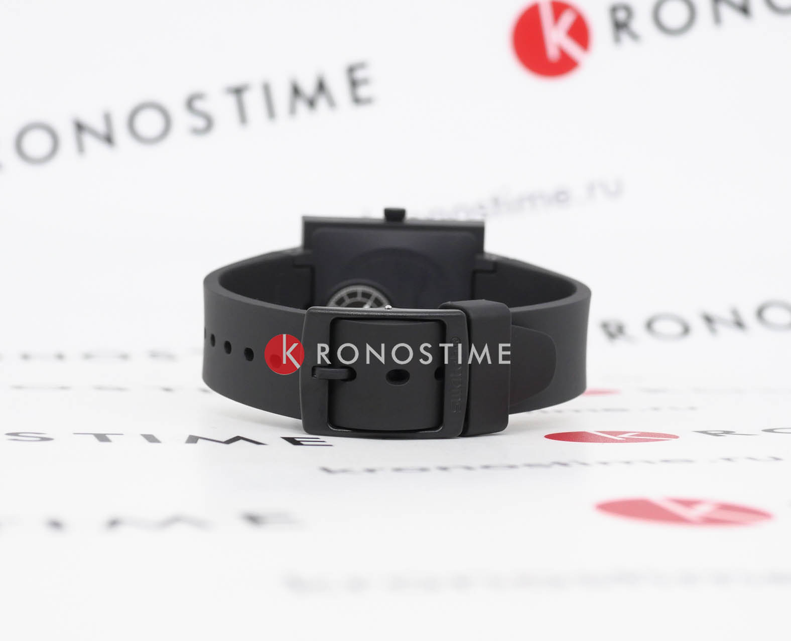 Swatch Square Bioceramic Standard SO34B701 "WHAT IF...BLACK?" - это стильные квадратные часы с корпусом 41.8x41.8 мм из черной матовой биокерамики и белым циферблатом. Модель оснащена кварцевым механизмом, окошком даты и дня недели, водонепроницаемостью до 20 метров. Часы имеют черный матовый ремешок из биоматериала и стекло из биоматериала. Стрелки с люминесцентным покрытиемЛюминесцентное покрытиеПозволяет считывать показания времени в темноте. Производители наносят на стрелки, часовые индексы, безель или поверхность циферблата светонакопительный состав, дающий холодное свечение.. Эта экологичная модель унисекс сочетает инновационные материалы с классическим черно-белым дизайном, вдохновленным оригинальным Swatch 1983 года, и подходит для тех, кто ценит минимализм и заботу об окружающей среде.