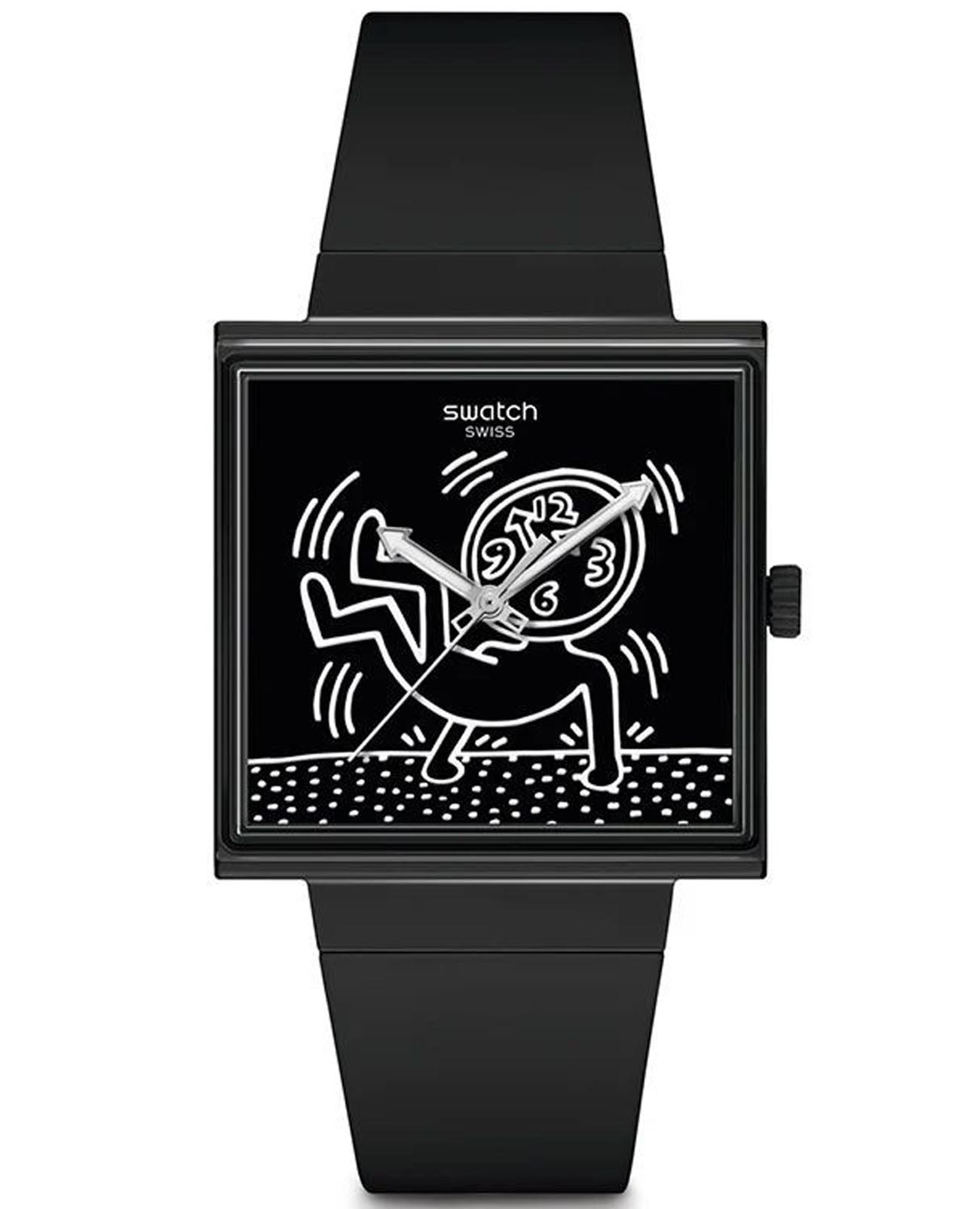 Swatch New Gent Bioceramic Standard SO34Z103 "Break Loose Watch" - это стильные квадратные часы с корпусом 41,8x41,8 мм из черной матовой биокерамики с дизайнерским рисунком. Модель оснащена кварцевым механизмом и водонепроницаемостью до 20 метров. Стрелки часов с люминесцентным покрытиемЛюминесцентное покрытиеПозволяет считывать показания времени в темноте. Производители наносят на стрелки, часовые индексы, безель или поверхность циферблата светонакопительный состав, дающий холодное свечение.. Часы имеют черный матовый ремешок из биоматериала и стекло из биоматериала. Эта экологичная модель унисекс сочетает инновационные материалы с необычным черно-белым дизайном, вдохновленным оригинальным Swatch 1983 года, и подходит для тех, кто ценит минимализм и заботу об окружающей среде.