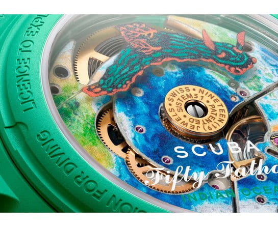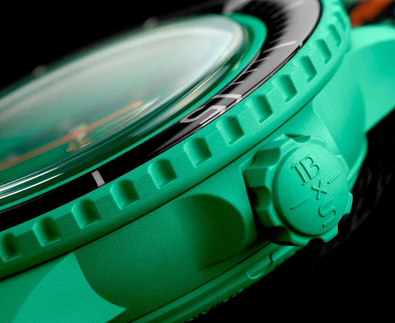 Швейцарские наручные часы сочетают в себе современный дизайн и инновационные технологии. Модель обладает круглым корпусом диаметром 42,3 мм, изготовленным из биокерамикиБиокерамикаБиокерамика — это материал, который на две трети состоит из керамики, на одну треть — из биопластика. Он сочетает в себе лучшие качества обоих материалов и обладает прочностью и шелковистой на ощупь текстурой., что обеспечивает высокую прочность и устойчивость к внешним воздействиям . Толщина корпуса составляет 14,4 мм, а расстояние между ушками — 48,0 мм, что делает часы удобными для повседневного использования . Ремешок выполнен из ткани в стиле ремешка NATOРемешок NATOРемешок NATO — это прочный, универсальный и сменный часовой ремешок, изначально созданный для военных. Он изготовлен из нейлона или другого прочного материала и имеет уникальную конструкцию, которая позволяет часам оставаться на запястье даже в случае поломки одной из прикрепляющих точек. , гарантируя комфортное ношение и долговечность . Зеленый циферблат дополнен люминесцентными метками и арабскими цифрами, что обеспечивает четкость считывания времени в любых условиях . Для защиты используется органическое стекло, обеспечивающее надежную защиту от царапин и механических повреждений . Часы работают на автоматическом механизме Sistem51, что гарантирует точность хода без необходимости регулярной подзаводки . Водонепроницаемость часов достигает 100 метров, что позволяет использовать их в повседневных условиях, однако не рекомендуется погружение на большую глубину . Дополнительные элементы дизайна, такие как заводная головка и кнопки-пушеры, выполненные из биокерамикиБиокерамикаБиокерамика — это материал, который на две трети состоит из керамики, на одну треть — из биопластика. Он сочетает в себе лучшие качества обоих материалов и обладает прочностью и шелковистой на ощупь текстурой., завершают образ этих стильных и функциональных часов.
