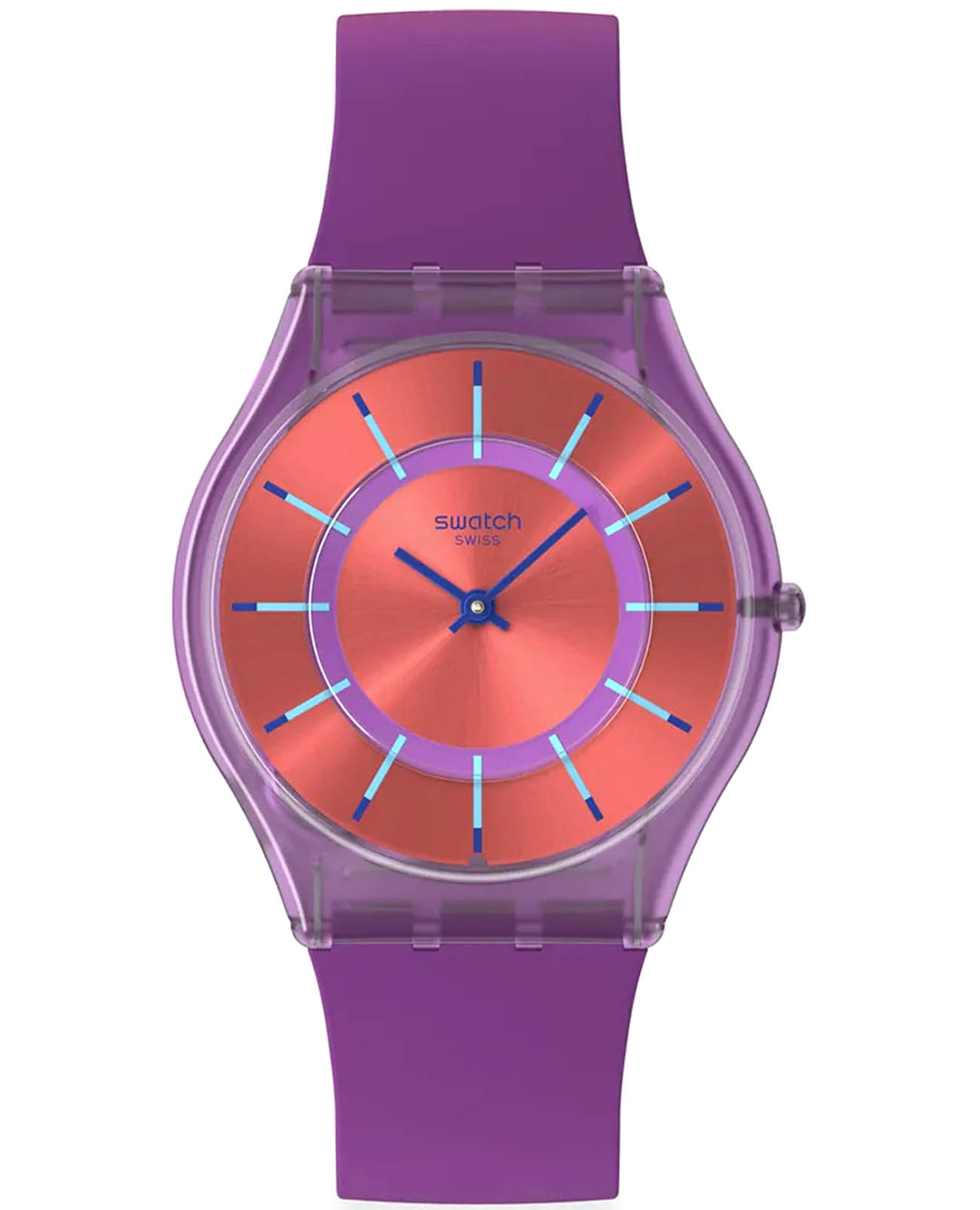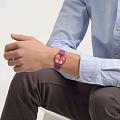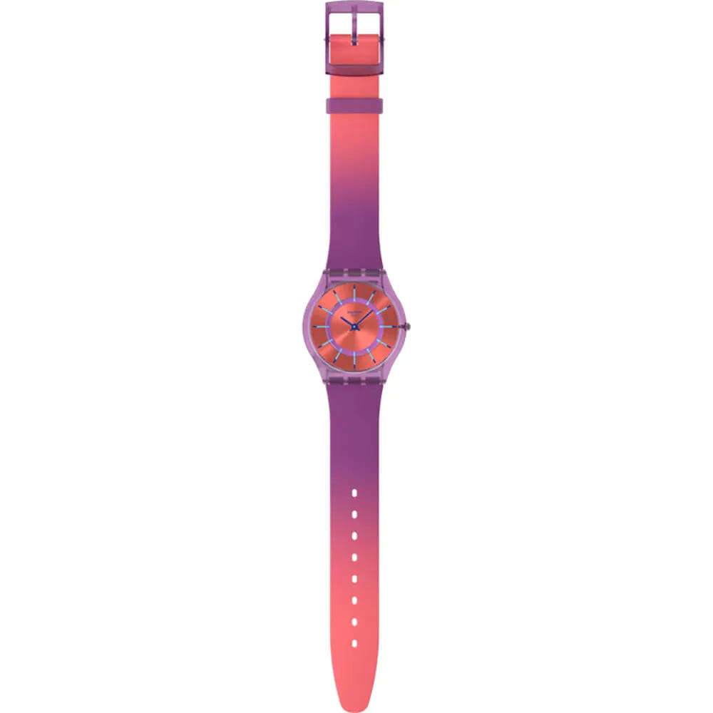 Часы Swatch Gent Essentials SS08V108 — это стильный и современный аксессуар для тех, кто ценит лёгкость и комфорт. Часы идеально подойдут как для мужчин, так и для женщин. Эти ультратонкие часы с биостеклом имеют темно-розовый циферблат с радиальной полировкой и внутренней окружностью фиолетового цвета, двухцветные сине-голубые часовые отметки, а также синие часовую и минутную стрелки. Модель сочетает в себе кварцевый механизм, элегантное оформление, а также матово-прозрачный сиреневый корпус закреплен на матовом ремешке градиентной расцветки, варьирующейся от фиолетового до темно-розового, дополненном прозрачным матовым тренчиком сиреневого оттенка и такой же пряжкой. Водозащита 30 метров делает часы практичными для повседневного использования. Эти часы подойдут для повседневного ношения и станут ярким акцентом в вашем наряде.