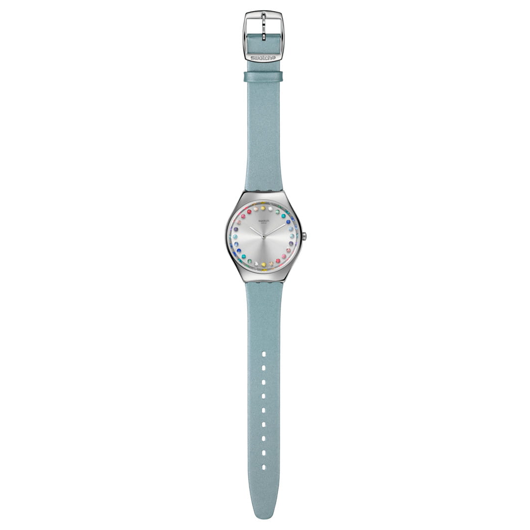 Часы Swatch SYXS144 — это стильный и современный аксессуар для тех, кто ценит лёгкость и комфорт. Часы идеально подойдут как для мужчин, так и для женщин.Эти элегантные часы с полированным корпусом из нержавеющей стали дополнены кожаным ремешком пудрово-голубого цвета. На фоне серебристого циферблата с радиальной полировкой красиво переливаются всеми цветами радуги часовые индексы в виде кристаллов. Водозащита 30 метров делает часы практичными для повседневного использования. Эти часы подойдут для повседневного ношения и станут ярким акцентом в вашем наряде.