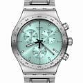 Часы Swatch YVS498G — это стильный и современный аксессуар для тех, кто ценит лёгкость и комфорт. Эта стильная модель часов из нержавеющей стали дополнена матовым металлическим браслетом из нержавеющей стали со съемными звеньями и застёжкой «бабочка»Застёжка "бабочка"Такой вид застёжки дополняется предохранителями, помогающими избежать случайного раскрытия браслета. Обладают изящным исполнением. . Бирюзовый циферблат с радиальной полировкой оснащен хронографомХронографФункция позволяет измерять отрезки времени с особой точностью: часы, минуты, секунды. Верным признаком хронографа является наличие на циферблате 3 дополнительных окошек-счётчиков. и светящимися в темноте индексами и стрелками из-за люминесцентного покрытияЛюминесцентное покрытиеПозволяет считывать показания времени в темноте. Производители наносят на стрелки, часовые индексы, безель или поверхность циферблата светонакопительный состав, дающий холодное свечение. заключен в матовый корпус из нержавеющей стали. Завершают образ индикатор даты в положении «4 часа» на циферблате, а также темно-серые цифры и индексы на безелеБезельВнешний ободок, закрепляющий стекло. В спортивных часах так называется поворотное кольцо с делениями на циферблате, выполняет роль таймера – замеряет отрезки времени на шкале. Неподвижный безель – элемент декора. Однонаправленно вращающийся безель на дайверских часах позволяет фиксировать моменты погружения и выныривания на поверхность. из нержавеющей стали. Водозащита 30 метров делает часы практичными для повседневного использования. Эти часы подойдут для повседневного ношения и станут ярким акцентом в вашем наряде.