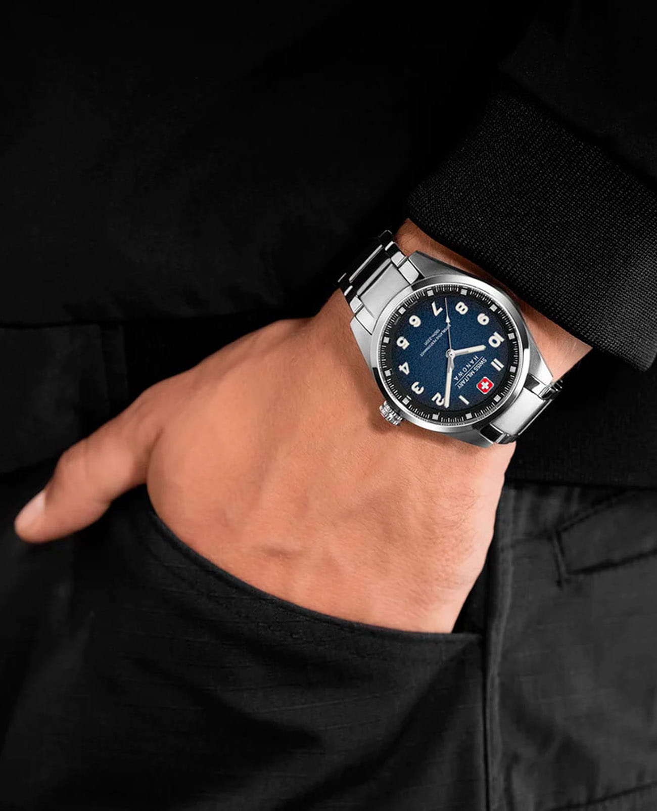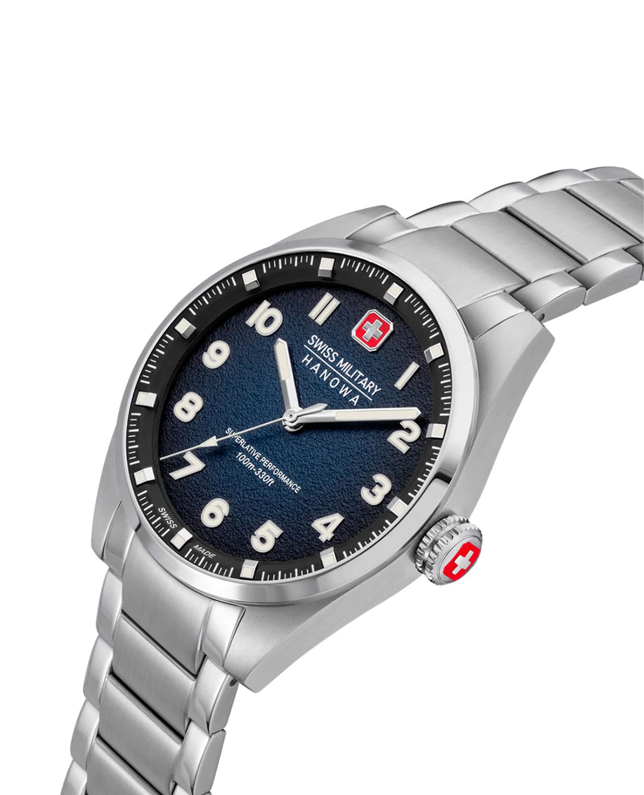 Мужские швейцарские часы Swiss Military Hanowa Greyhound SMWGG0001504, кварцевый механизм с высокой точностью. Сапфировое стеклоСапфировое стеклоПрочный и надёжный материал из кристалла сапфира синтетического происхождения, характеризующийся особой твёрдостью и устойчивостью к царапинам и повреждениям. устойчивое к появлению царапин, обладающее высокой прозрачностью. Корпус часов изготовлен из нержавеющей стали. Стрелки и цифры с люминесцентным покрытиемЛюминесцентное покрытиеПозволяет считывать показания времени в темноте. Производители наносят на стрелки, часовые индексы, безель или поверхность циферблата светонакопительный состав, дающий холодное свечение.. Класс водозащиты: 100 метров, позволит плавать, нырять и заниматься другими водными видами спорта. Стальной браслет на раскладной застёжкеРаскладная застёжкаТакой тип застёжки используется только на браслетах из металла. Она никогда не раскрывается полностью, происходит разделение на 2 и более частей. Раскладывающая застёжка снизит вероятность потери часов к минимуму..