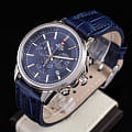 Мужские швейцарские часы-хронографХронографФункция позволяет измерять отрезки времени с особой точностью: часы, минуты, секунды. Верным признаком хронографа является наличие на циферблате 3 дополнительных окошек-счётчиков. с секундомеромСекундомерСекундоме́р — прибор, способный измерять интервалы времени с точностью до долей секунды. Swiss Military by Chrono SM34052.13, кварцевый механизм с высокой точностью. Сапфировое стеклоСапфировое стеклоПрочный и надёжный материал из кристалла сапфира синтетического происхождения, характеризующийся особой твёрдостью и устойчивостью к царапинам и повреждениям. устойчивое к мелким механическим повреждениям. Корпус часов изготовлен из нержавеющей стали. На циферблате расположены два дополнительных индикатора и окошко даты. Окошко даты находится в положении 4 часов. Стрелки с люминесцентным покрытиемЛюминесцентное покрытиеПозволяет считывать показания времени в темноте. Производители наносят на стрелки, часовые индексы, безель или поверхность циферблата светонакопительный состав, дающий холодное свечение.. Класс водозащиты: 100 метров, позволит плавать, нырять и заниматься другими водными видами спорта. Кожаный ремешок на стандартной застёжке.