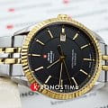 Мужские высокоточные кварцевые часы. Механизм ETA F06.411. Корпус и браслет выполнены из нержавеющей стали с частичным покрытием PVD цвета желтого золота. Диаметр корпуса 40 мм, толщина 9 мм. Закаленное минеральное стекло с сапфировым напылением. Водостойкость WR 50.