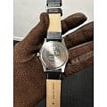 Браслет из телячьей кожи чёрного цвета с классической застёжкой обеспечивает комфортное ношение и надёжную фиксацию. Водозащита до 5 ATM делает часы подходящими для повседневного использования, включая дождь и мытьё рук, но не для плавания.