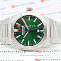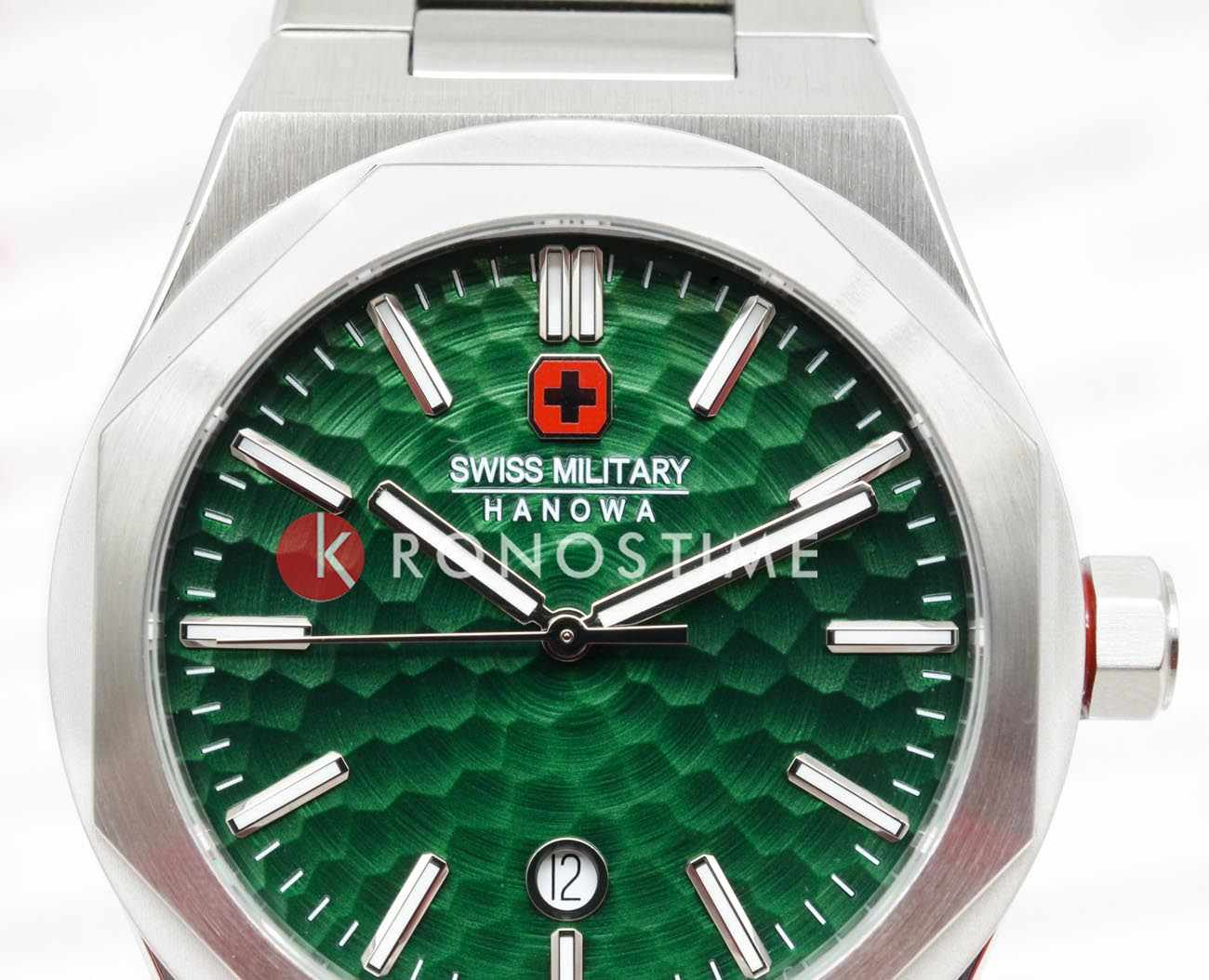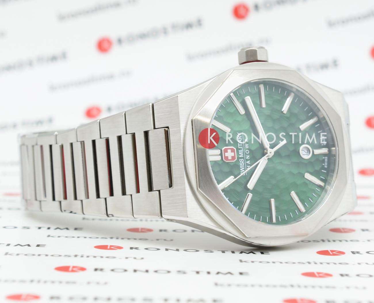 Мужские наручные часы Swiss Military Hanowa Octon Hammered SMWGH2101906r сочетают в себе стильный дизайн и высокую функциональность. Модель обладает круглым корпусом диаметром 43 мм, выполненным из нержавеющей стали, что обеспечивает прочность, устойчивость к коррозии и долговечность . Браслет также изготовлен из нержавеющей стали с раскладной застежкойРаскладная застёжкаТакой тип застёжки используется только на браслетах из металла. Она никогда не раскрывается полностью, происходит разделение на 2 и более частей. Раскладывающая застёжка снизит вероятность потери часов к минимуму., гарантирующей комфортное ношение и безопасность. Зеленый циферблат оснащен метками в виде штрихов и окном даты в положении «6 часа» . Для защиты используется сапфировое стеклоСапфировое стеклоПрочный и надёжный материал из кристалла сапфира синтетического происхождения, характеризующийся особой твёрдостью и устойчивостью к царапинам и повреждениям., которое обеспечивает превосходную защиту от царапин и антибликовый эффект. Часы работают на кварцевом механизме швейцарского производства, что гарантирует высокую точность хода без необходимости подзаводки. Модель отличается водонепроницаемостью до 100 метров (10 атмосфер), что позволяет использовать их во время плавания и других водных видов спорта. Элегантный дизайн и надежность делают эти часы идеальным выбором для повседневного использования и активного образа жизни.