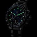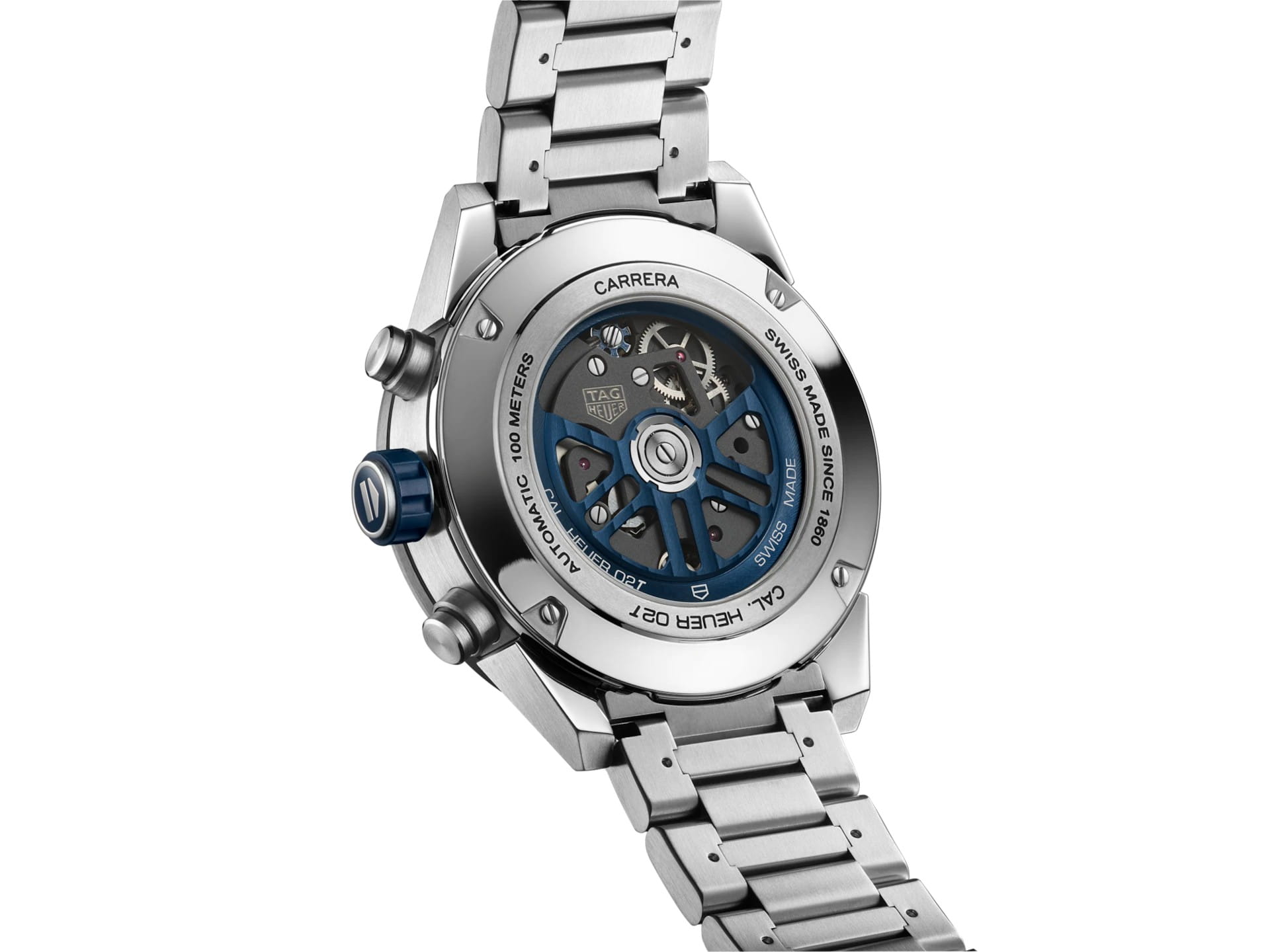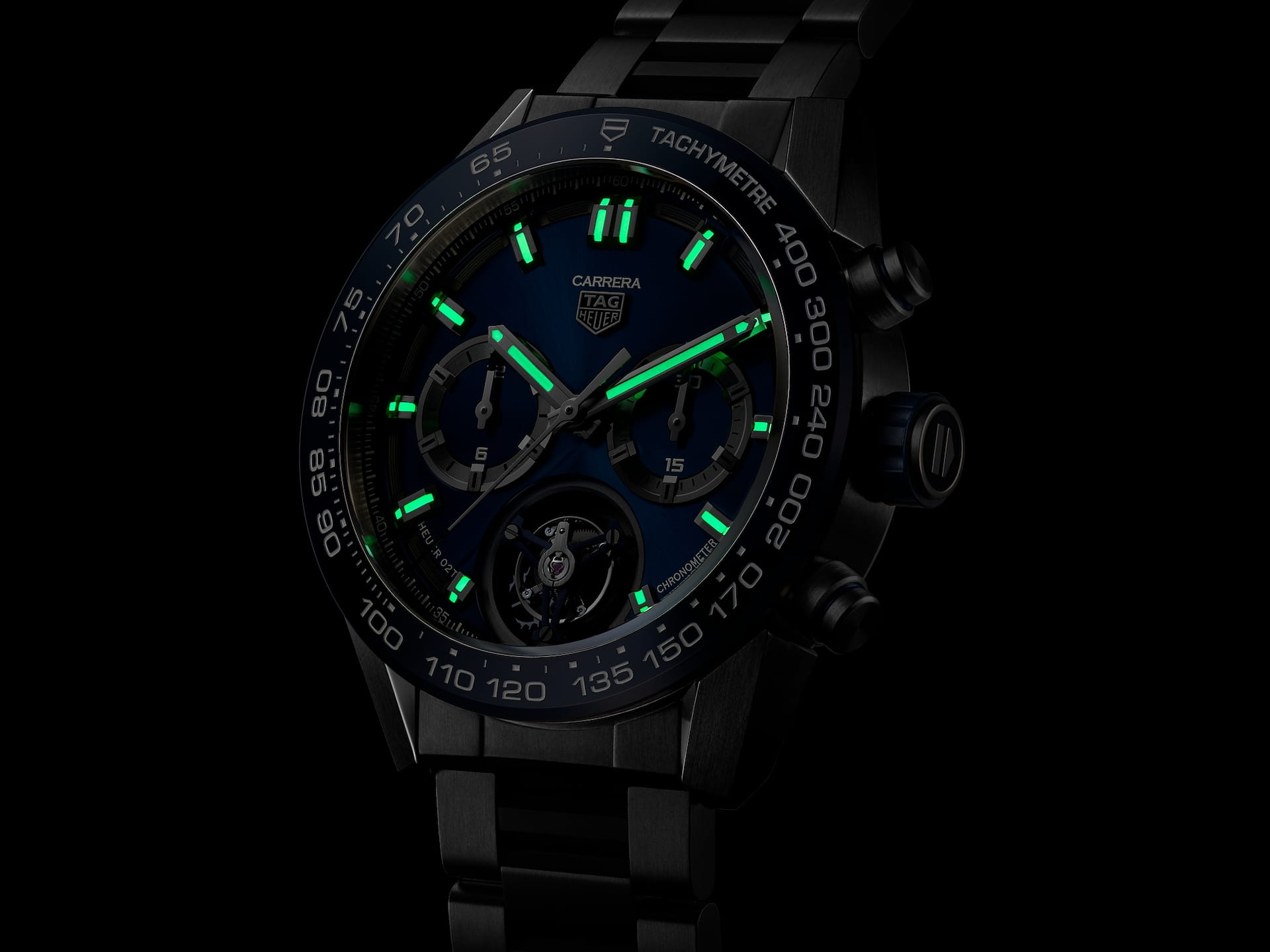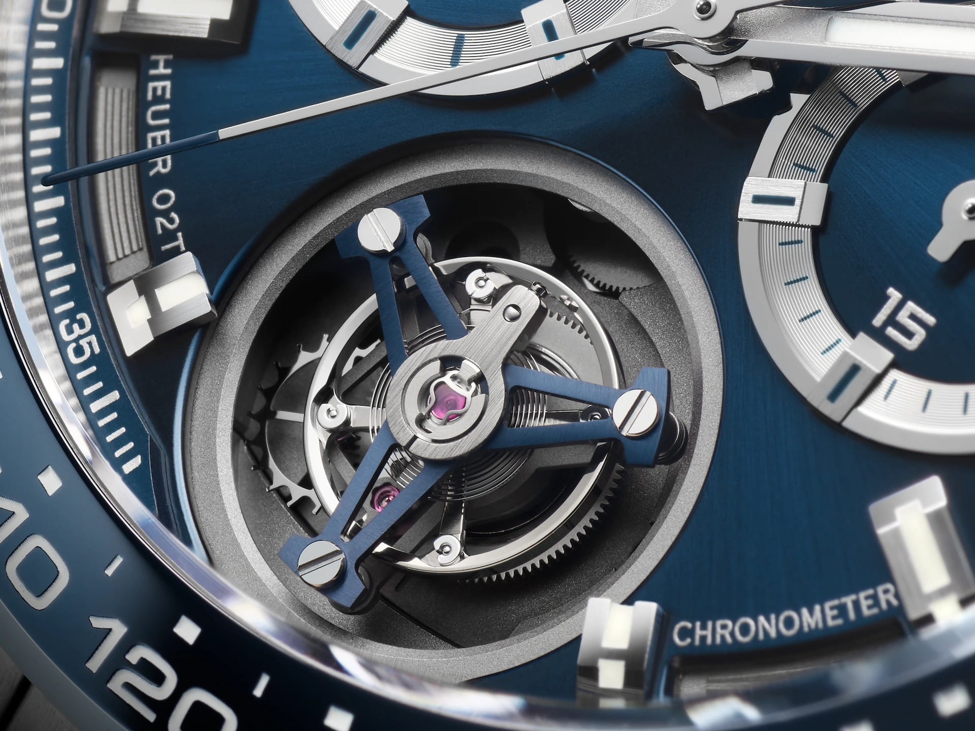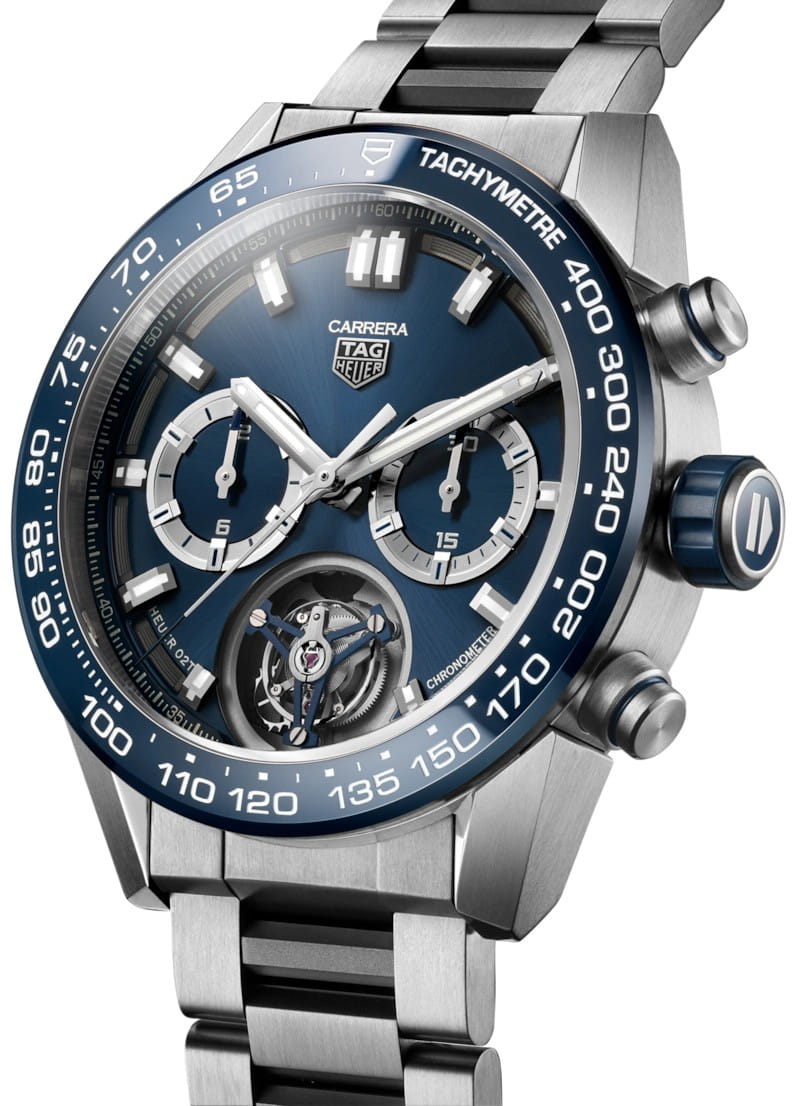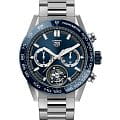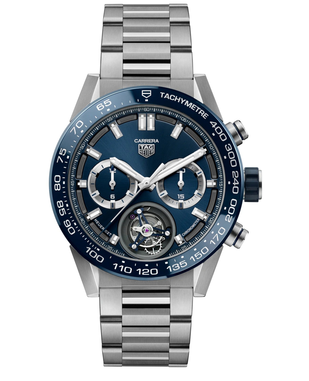 В этой модели турбийона TAG Heuer Carrera высокая функциональность сочетается с высокой точностью. Самое престижное усложнение часового искусства - это сердце культового дизайна Дома, которое с гордостью представлено в новой эффектной модели синего цвета с браслетом из титана. Швейцарские мужские часы TAG Heuer Carrera CAR5A8C.BF0707, механический механизм (автоматический калибр) с высокой точностью. Сапфировое стекло устойчивое к появлению царапин, обладающее высокой прозрачностью. Класс водозащиты: 100 метров, позволит плавать, нырять и заниматься другими водными видами спорта. Корпус часов изготовлен из титана, серебристого цвета.