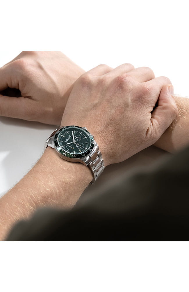 Американские мужские часы Timberland Parkman TDWGK0041301 имеют кварцевый механизм с высокой точностью. Класс водозащиты: 50 метров, позволит защитить корпус от случайных брызг или капель дождя. Корпус часов изготовлен из стали. Прочное минеральное стеклоМинеральное стеклоМинеральное стекло представляет собой искусственно выращенный минерал кварца. Такое стекло отличается особой устойчивостью к повреждениям и царапинам. Уступает по некоторым качествам сапфировому стеклу.. Стрелки c люминесцентным покрытиемЛюминесцентное покрытиеПозволяет считывать показания времени в темноте. Производители наносят на стрелки, часовые индексы, безель или поверхность циферблата светонакопительный состав, дающий холодное свечение.. БезельБезельВнешний ободок, закрепляющий стекло. В спортивных часах так называется поворотное кольцо с делениями на циферблате, выполняет роль таймера – замеряет отрезки времени на шкале. Неподвижный безель – элемент декора. Однонаправленно вращающийся безель на дайверских часах позволяет фиксировать моменты погружения и выныривания на поверхность. из алюминия с PVD-покрытиемPVDУльтратонкое покрытие наносится в технике вакуумного напыления, сочетает в себе нитрид титана особой прочности со слоем золота или оксида хрома. Несёт в себе декоративную или защитную функцию.. Стальной браслет на раскладной застёжкеРаскладная застёжкаТакой тип застёжки используется только на браслетах из металла. Она никогда не раскрывается полностью, происходит разделение на 2 и более частей. Раскладывающая застёжка снизит вероятность потери часов к минимуму..