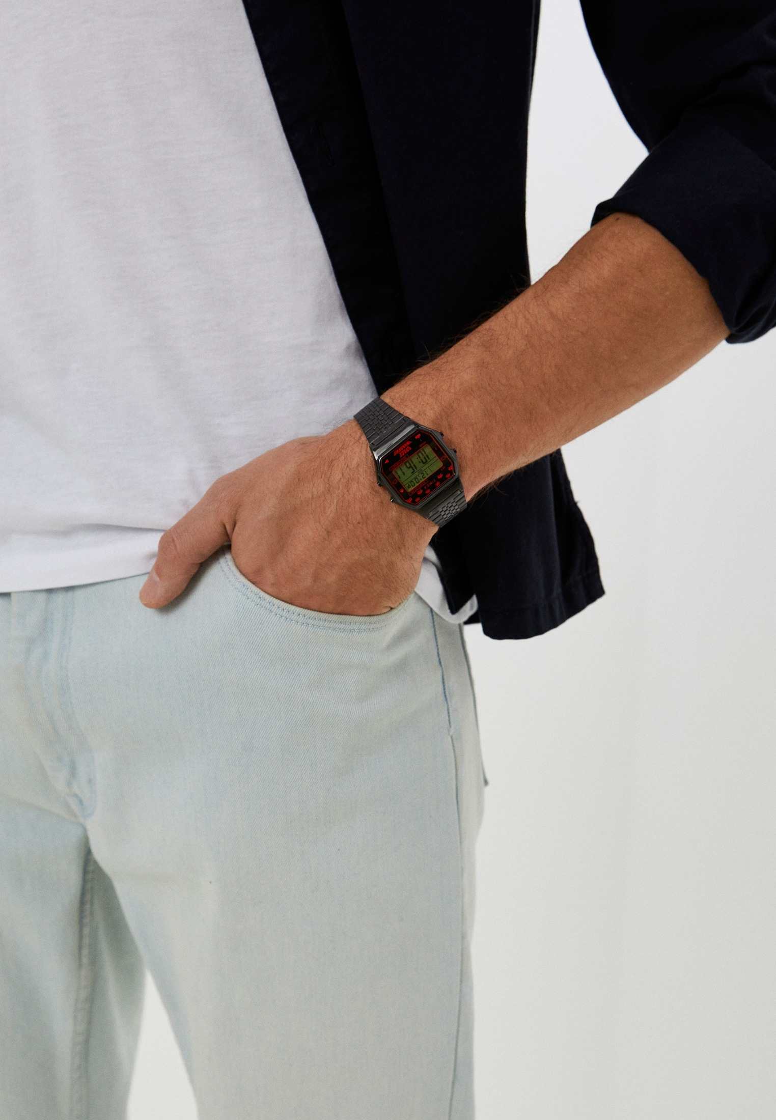 Часы Timex TW2V30200 представляют собой современный электронный аксессуар с уникальным дизайном, вдохновленным классической видеоигрой Space Invaders. Эти часы, произведенные в США, оснащены кварцевым механизмом и предназначены для активного образа жизни. Корпус часов выполнен из латуни с черным PVDPVDУльтратонкое покрытие наносится в технике вакуумного напыления, сочетает в себе нитрид титана особой прочности со слоем золота или оксида хрома. Несёт в себе декоративную или защитную функцию. покрытием, а акриловое пластиковое стекло защищает зеленый ЖК-циферблат, на котором отображается время, дата, день недели и месяц. Специальная серия часов украшена аутентичной пиксельной графикой, изображающей пришельцев и лазерные шутеры, что придает им оригинальный вид. Одной из ключевых особенностей является фирменная подсветка Indiglo, которая обеспечивает удобное считывание информации в темное время суток. Часы также оснащены электронным SPLIT-хронографомХронографФункция позволяет измерять отрезки времени с особой точностью: часы, минуты, секунды. Верным признаком хронографа является наличие на циферблате 3 дополнительных окошек-счётчиков. с точностью до 1/100 секунды, с секундомеромСекундомерСекундоме́р — прибор, способный измерять интервалы времени с точностью до долей секунды. и функцией ежедневного будильникаБудильникБуди́льник — часы, в заданный момент времени подающие звуковой, световой и/или в редких случаях другой сигнал., что делает их функциональным аксессуаром для повседневного использования. Стальной браслет с черным PVDPVDУльтратонкое покрытие наносится в технике вакуумного напыления, сочетает в себе нитрид титана особой прочности со слоем золота или оксида хрома. Несёт в себе декоративную или защитную функцию. покрытием и раскладным замкомРаскладной замокДанный вариант застежки используется только на часах с металлическим браслетом. Отличительная особенность такого крепления в том, что длина браслета становится универсальной и вы можете самостоятельно отрегулировать нужный вам размер – застежка просто двигается по браслету часов. обеспечивает надежную фиксацию на запястье и комфорт в ношении. Габаритные размеры часов составляют 34x29 мм, толщина — 10 мм, а ширина браслета — 18 мм. Водозащита 30WR обеспечивает защиту от случайных брызг. Сзади корпус украшен гравировкой и крепится на четырех винтах, что подчеркивает внимание к деталям и долговечность. Часы поставляются в специальной упаковке, что делает их отличным выбором для подарка или личного использования.