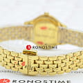 На заводной головке расположился утончённый кабашон, придающий модели женственный облик. Дополнительное очарование достигается благодаря перламутровому циферблату, плавным контурам, вогнутому безелюБезельВнешний ободок, закрепляющий стекло. В спортивных часах так называется поворотное кольцо с делениями на циферблате, выполняет роль таймера – замеряет отрезки времени на шкале. Неподвижный безель – элемент декора. Однонаправленно вращающийся безель на дайверских часах позволяет фиксировать моменты погружения и выныривания на поверхность.. Высокоточный кварцевый механизм ETA 980.153. Золотистое PVD-покрытиеPVDУльтратонкое покрытие наносится в технике вакуумного напыления, сочетает в себе нитрид титана особой прочности со слоем золота или оксида хрома. Несёт в себе декоративную или защитную функцию.. Стальной браслет с ювелирной отделкой. Отдельный мини-счётчик секунд. Сапфировое стекло отличается устойчивостью к царапинам.. Функция EOLEOLПредставляет собой систему, уведомляющую владельца часов о необходимости замены элемента питания. За 2 недели до полного разряда батарейки секундная стрелка перестаёт ходить чётко и начинает перепрыгивать на 3-4 деления.. Габариты: 24,4 x 27,2 x 7,7 мм.