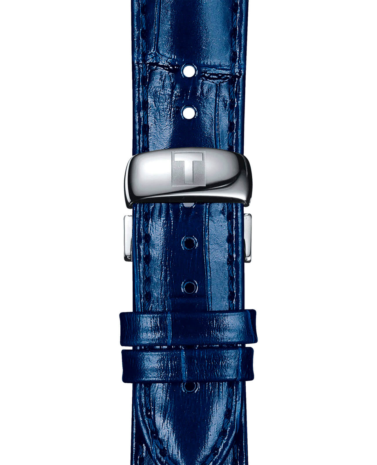 Ярко-синее исполнение модели приковывает взгляды окружающих, насыщенный цвет поможет разбавить строгий наряд без отхождения от общей классической концепции. Серебристые стрелки и часовые метки обеспечивают идеальную читаемость часов, минут, секунд и даты. Ремешок из натуральной кожи. Водонепроницаемость при давлении 10 бар на глубине 100 метров. Циферблат покрывает надёжное сапфировое стекло.