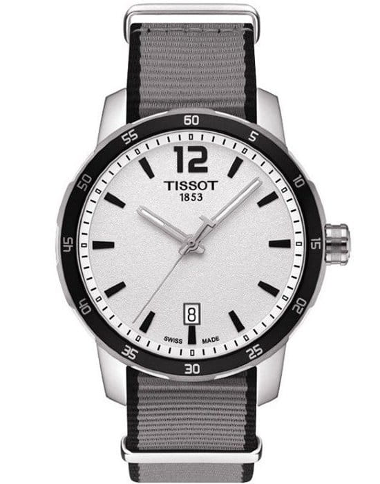 TISSOT T0954101703700 T-Sport Quickster Quartz - мужские кварцевые наручные часы Корпус этих часов среднего размера (40 мм) и выполнен из нержавеющей стали L316 металлического цвета Модель TISSOT T0954101703700 T-Sport Quickster Quartz имеет устойчивое к царапинам сапфировое стекло, тканевый ремешок серого цвета, белый циферблат Калибр механизма: ETA F06111 Класс водозащиты: 100 м / 10 АТМ (разрешается плавание и ныряние без акваланга) Дополнительные функции и особенности: отображение числа Полная заводская комплектация TISSOT: оригинальные часы, фирменная коробка, инструкция, сервисная книжка, роман о часовой фабрике, миникаталог, замшевый фирменный чехол черного цвета для хранения и/или переноски часов, кассовый и товарный чеки Международная гарантия 2 года Производство и сборка: Швейцария