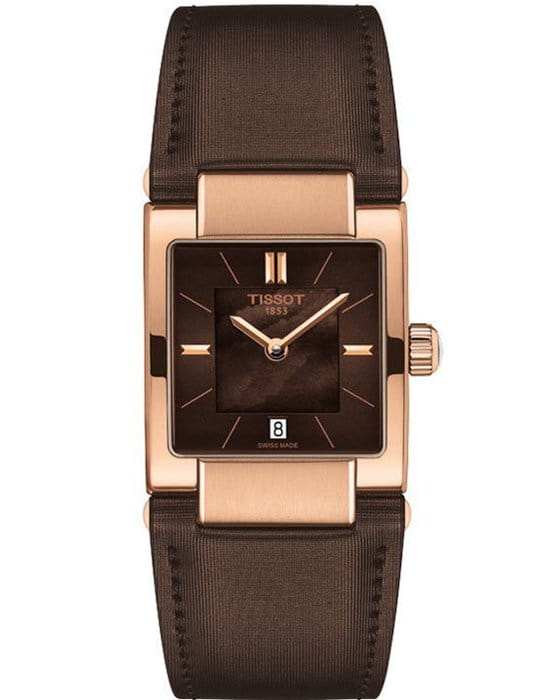 TISSOT T0903103738100 T-Trend T02 Quartz - женские кварцевые наручные часы Корпус этих часов небольшого размера (23 мм) и выполнен из нержавеющей стали L316 с PVD-покрытием цвета розового золота Модель TISSOT T0903103738100 T-Trend T02 Quartz имеет устойчивое к царапинам сапфировое стекло, ремешок из натуральной кожи коричневого цвета, коричневый циферблат Калибр механизма: ETA F03111 Класс водозащиты: 50 м / 5 АТМ (избыточная защита от брызг, допускается кратковременное нахождение в воде) Дополнительные функции и особенности: отображение числа Полная заводская комплектация TISSOT: оригинальные часы, фирменная коробка, инструкция, сервисная книжка, роман о часовой фабрике, миникаталог, замшевый фирменный чехол черного цвета для хранения и/или переноски часов, кассовый и товарный чеки Международная гарантия 2 года Производство и сборка: Швейцария