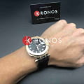 Наручные часы оформлены в стиле гоночных мотоциклов, присутствуют эффектные спортивные элементы. Внушительный корпус с надёжным PVD-покрытием имеет диаметр 45 мм, что делает его идеальным вариантом для широкого запястья. Швейцарский механизм Swissmatic с запасом хода 72 часа. Скелетонизированная задняя крышка. Сапфировое стекло. Ремешок из натуральной кожи с тиснением под кожу крокодила. Габариты: 48,8 x 45 x 13,04 мм.