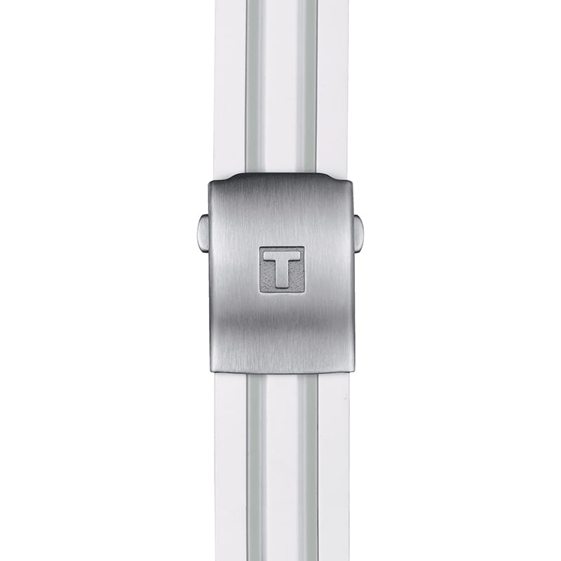 Мужские швейцарские часы-хронографХронографФункция позволяет измерять отрезки времени с особой точностью: часы, минуты, секунды. Верным признаком хронографа является наличие на циферблате 3 дополнительных окошек-счётчиков. Tissot T-Sport T-Race Quartz Chronograph T048.417.17.012.00, кварцевый механизм с высокой точностью. Сапфировое стеклоСапфировое стеклоПрочный и надёжный материал из кристалла сапфира синтетического происхождения, характеризующийся особой твёрдостью и устойчивостью к царапинам и повреждениям. устойчивое к появлению царапин, обладающее высокой прозрачностью. Класс водозащиты: 100 метров, позволит плавать, нырять и заниматься другими водными видами спорта. Корпус часов изготовлен из стали. Силиконовый ремешок с раскладной застёжкойРаскладная застёжкаТакой тип застёжки используется только на браслетах из металла. Она никогда не раскрывается полностью, происходит разделение на 2 и более частей. Раскладывающая застёжка снизит вероятность потери часов к минимуму..