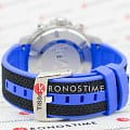 Наручные часы отличаются спортивным дизайном, прослеживается дайверская тематика, чему способствует и водонепроницаемость при давлении 30 бар на глубине 300 метров. Кварцевый механизм ETA G10.212. Керамический безельБезельВнешний ободок, закрепляющий стекло. В спортивных часах так называется поворотное кольцо с делениями на циферблате, выполняет роль таймера – замеряет отрезки времени на шкале. Неподвижный безель – элемент декора. Однонаправленно вращающийся безель на дайверских часах позволяет фиксировать моменты погружения и выныривания на поверхность. Сапфировое стекло с антибликовым покрытием. Завинчивающаяся заводная головка и задняя крышка. Люминесцентная подсветкаЛюминесцентное покрытиеПозволяет считывать показания времени в темноте. Производители наносят на стрелки, часовые индексы, безель или поверхность циферблата светонакопительный состав, дающий холодное свечение.. Черно-синий тканевый ремешок. Секундомер, хронографХронографФункция позволяет измерять отрезки времени с особой точностью: часы, минуты, секунды. Верным признаком хронографа является наличие на циферблате 3 дополнительных окошек-счётчиков., календарь. Габариты: 45 x 45 x 12,8 мм.