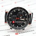 Аксессуар позволит грамотно дополнить образ, гармония чёрно-белой палитры никогда не потеряет актуальности. Наручные часы позволят всегда находиться в центре внимания. Массивный циферблат с крупной индикацией времени, симметричным расположением окошек – важная деталь для делового мужчины, привыкшего всё делать вовремя. Ремешок из тисненой натуральной кожи имеет белую прострочку, вдохновение идет от спортивных моделей. Швейцарский кварцевый механизм ETA G10.212. Сапфировое стекло. Корпус из нержавеющей стали 316L. БезельБезельВнешний ободок, закрепляющий стекло. В спортивных часах так называется поворотное кольцо с делениями на циферблате, выполняет роль таймера – замеряет отрезки времени на шкале. Неподвижный безель – элемент декора. Однонаправленно вращающийся безель на дайверских часах позволяет фиксировать моменты погружения и выныривания на поверхность. размечен шкалой тахиметраТахиметрРазмеченная шкала, располагается на ободке или безеле часов. Тахиметр позволяет рассчитать скорость на определённом участке пути, расстояние измеряется в километрах или милях.. Водонепроницаемость до 10 бар. Люминесцентная подсветкаЛюминесцентное покрытиеПозволяет считывать показания времени в темноте. Производители наносят на стрелки, часовые индексы, безель или поверхность циферблата светонакопительный состав, дающий холодное свечение.. Секундомер, хронографХронографФункция позволяет измерять отрезки времени с особой точностью: часы, минуты, секунды. Верным признаком хронографа является наличие на циферблате 3 дополнительных окошек-счётчиков., индикация числа. Диаметр корпуса: 45,5 мм.