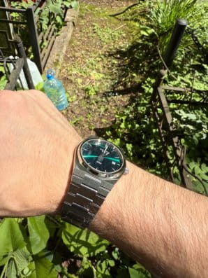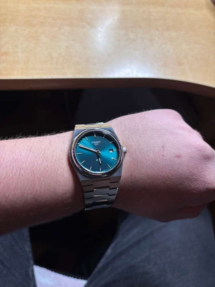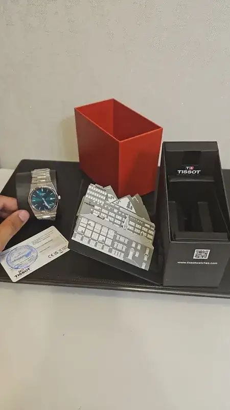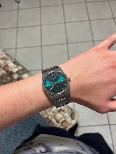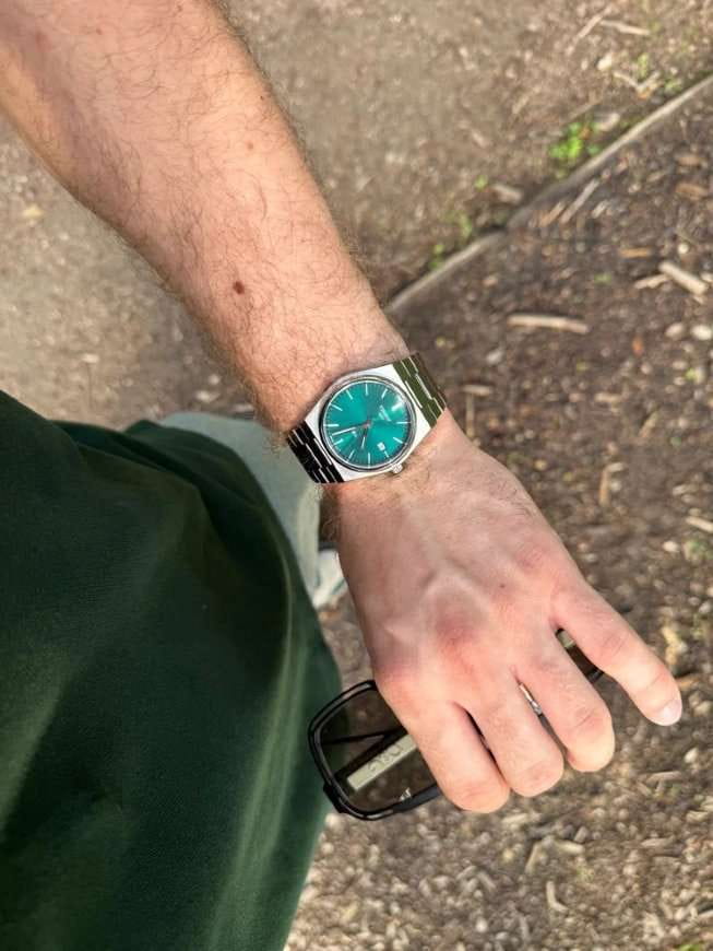 Tissot PRX 40mm (модель T137.410.11.091.00) – элегантные мужские часы, сочетающие современный стиль с передовыми технологиями. Корпус диаметром 40 мм выполнен из нержавеющей стали 316L, что обеспечивает надёжность и долговечность. Зелёный циферблат с эффектом солнечных лучей защищён сапфировым стекломСапфировое стеклоПрочный и надёжный материал из кристалла сапфира синтетического происхождения, характеризующийся особой твёрдостью и устойчивостью к царапинам и повреждениям., устойчивым к царапинам.
