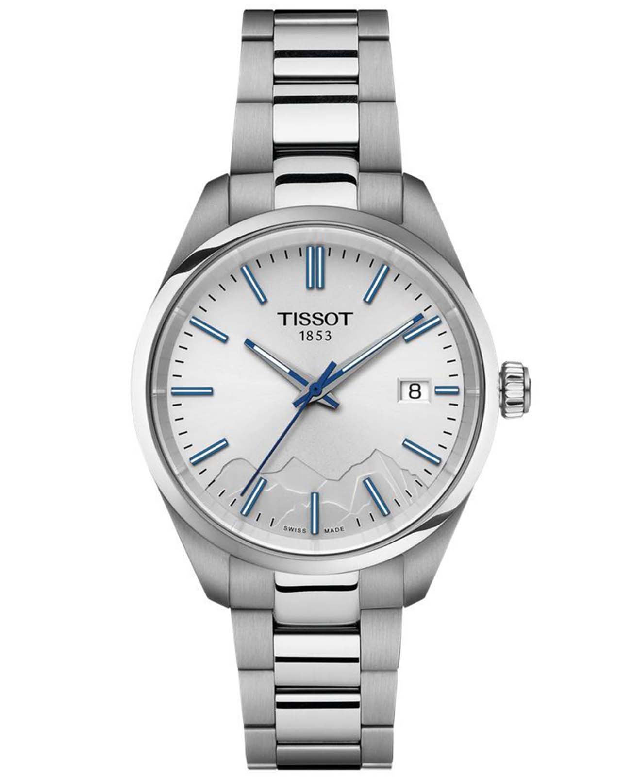 Tissot PR 100 Quartz 34mm T150.210.11.031.00 — универсальная и элегантная модель с классическим дизайном, идеально подходящая для повседневного стиля. Корпус диаметром 34 мм выполнен из нержавеющей стали 316L с сатинированной и полированной отделкой. Циферблат защищён сапфировым стекломСапфировое стеклоПрочный и надёжный материал из кристалла сапфира синтетического происхождения, характеризующийся особой твёрдостью и устойчивостью к царапинам и повреждениям. с антибликовым покрытиемАнтибликовое покрытиеСлой оксида металла в 0,13-0,3 микрон, благодаря которому стекло часов не бликует и не отражает свет. Антибликовое покрытие уменьшает отражение света в 10 раз, обеспечивая отличную читаемость показателей циферблата., устойчивым к царапинам. Серебристый циферблат с солнечным узором украшен тонкими индексами и стрелками с люминесцентным покрытиемЛюминесцентное покрытиеПозволяет считывать показания времени в темноте. Производители наносят на стрелки, часовые индексы, безель или поверхность циферблата светонакопительный состав, дающий холодное свечение. Super-LumiNova®. Окно даты расположено на «3 часах». Модель оснащена швейцарским кварцевым механизмом ETA F06.115 с функцией EOL-индикацииEOLПредставляет собой систему, уведомляющую владельца часов о необходимости замены элемента питания. За 2 недели до полного разряда батарейки секундная стрелка перестаёт ходить чётко и начинает перепрыгивать на 3-4 деления. — системой, предупреждающей о разряде батареи. Интегрированный браслет из нержавеющей стали завершён раскладной застёжкой 'бабочка'Застёжка "бабочка"Такой вид застёжки дополняется предохранителями, помогающими избежать случайного раскрытия браслета. Обладают изящным исполнением. с кнопками, обеспечивая надёжность и комфорт при носке. Водонепроницаемость до 100 метров делает часы отличным выбором для повседневной жизни и активного отдыха. Tissot PR 100 T150.210.11.031.00 — сочетание надёжной точности, лаконичного стиля и женственной утончённости.