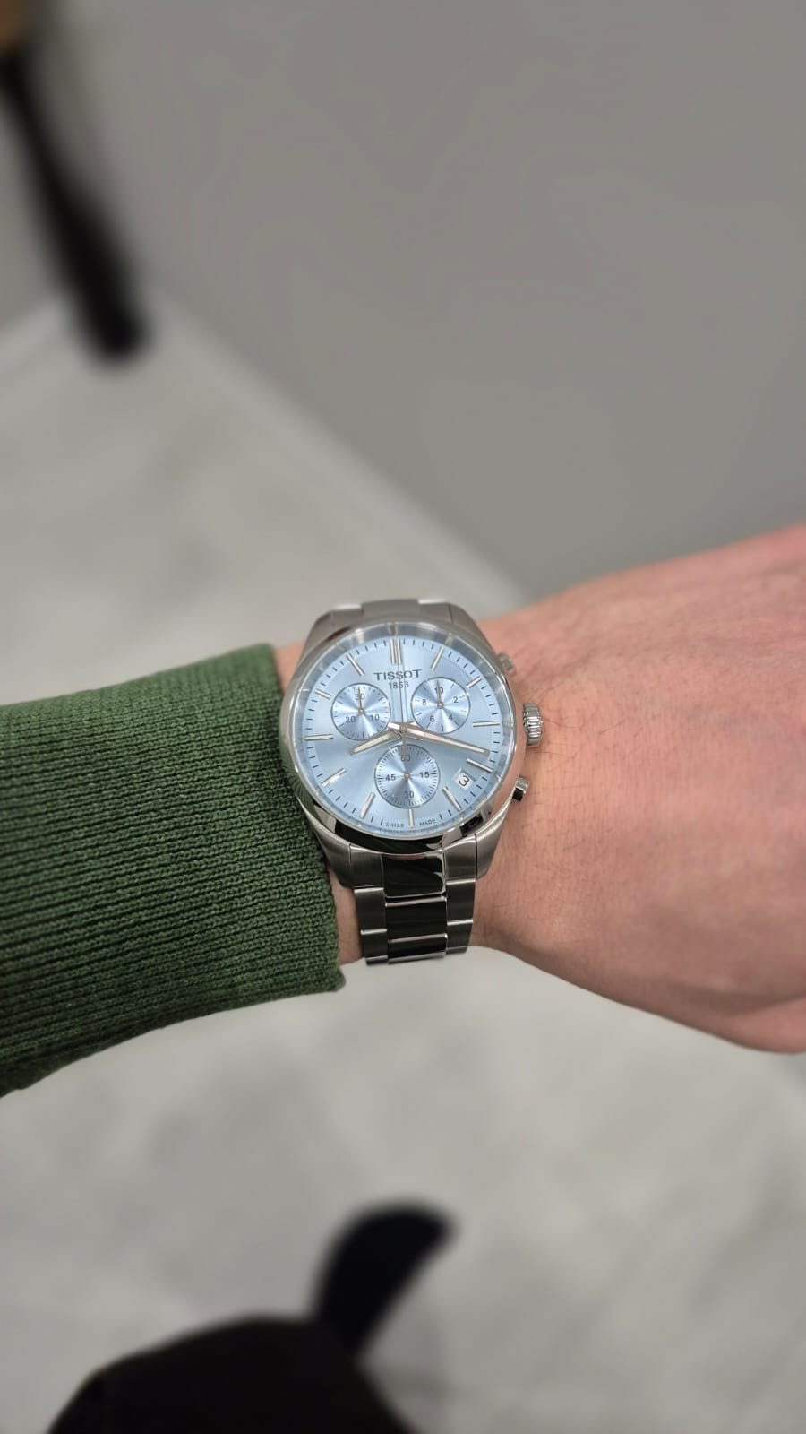 Мужские швейцарские часы Tissot PR 100 Chronograph T150.417.11.351.00, кварцевый механизм с высокой точностью. Сапфировое стеклоСапфировое стеклоПрочный и надёжный материал из кристалла сапфира синтетического происхождения, характеризующийся особой твёрдостью и устойчивостью к царапинам и повреждениям. устойчивое к появлению царапин, обладающее высокой прозрачностью. Корпус часов изготовлен из нержавеющей стали. Стрелки с люминесцентным покрытиемЛюминесцентное покрытиеПозволяет считывать показания времени в темноте. Производители наносят на стрелки, часовые индексы, безель или поверхность циферблата светонакопительный состав, дающий холодное свечение.. Окошко даты в положении 3 часов. Класс водозащиты: 100 метров, позволит плавать, нырять и заниматься другими водными видами спорта. Стальной браслет на застёжке-бабочке с кнопкамиЗастёжка "бабочка"Такой вид застёжки дополняется предохранителями, помогающими избежать случайного раскрытия браслета. Обладают изящным исполнением. . Хронограф с функцией фиксации нескольких результатов.