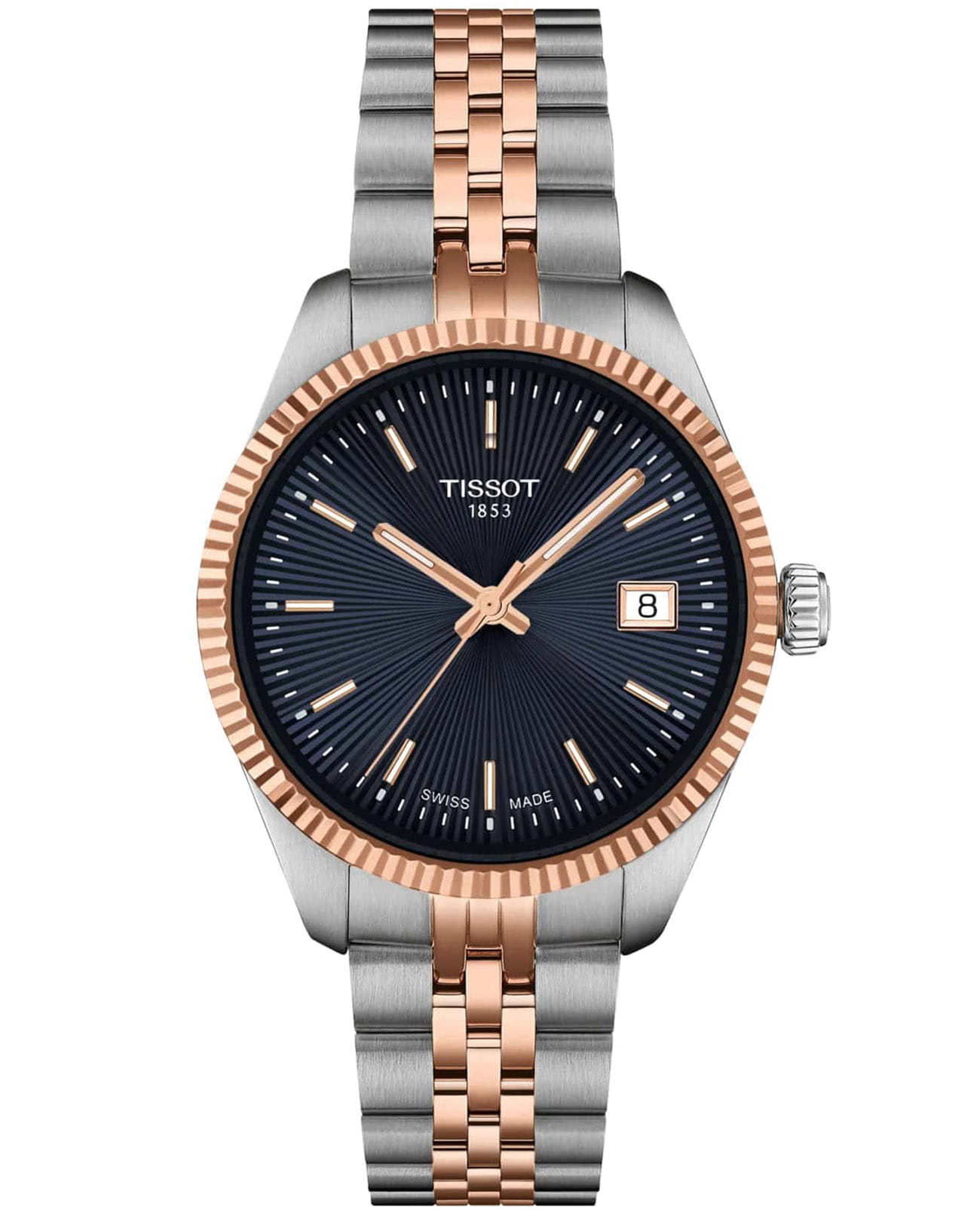Часы Tissot Ballade 34 мм T156.210.22.041.00 сочетают элегантность и современные технологии. Корпус диаметром 34 мм выполнен из нержавеющей стали 316L с рифлёным безелем, покрытым PVDPVDУльтратонкое покрытие наносится в технике вакуумного напыления, сочетает в себе нитрид титана особой прочности со слоем золота или оксида хрома. Несёт в себе декоративную или защитную функцию.-покрытием розового золота, придающим часам изысканный вид. Глубокий синий циферблат защищён выпуклым сапфировым стекломСапфировое стеклоПрочный и надёжный материал из кристалла сапфира синтетического происхождения, характеризующийся особой твёрдостью и устойчивостью к царапинам и повреждениям. с антибликовым покрытием, обеспечивающим стойкость к царапинам и отличную читаемость.