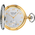Оригинальный аксессуар особенно понравится ценителям старинных вещей. Механические часы с возможностью ручного завода сохраняют запас хода до 46 часов благодаря калибру ETA 6498-1. Корпус выполнен из сочетания латуни и позолоты. Минеральное стекло защищено от царапин. В комплекте стильная цепочка. Габариты: 50 x 50 x 10,4 мм.