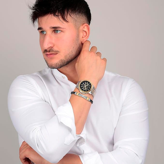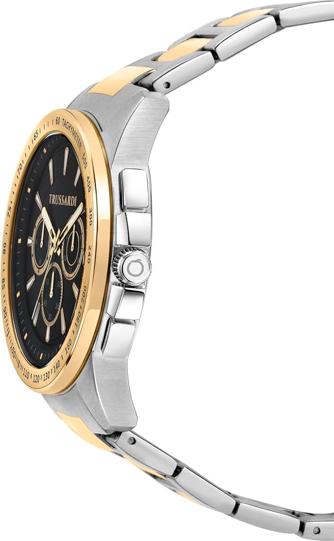 Итальянские мужские часы Trussardi T-Hawk R2453153001 - это стильный мужской аксессуар, который сочетает элегантный дизайн и практичность. Корпус выполнен из нержавеющей стали с безелемБезельВнешний ободок, закрепляющий стекло. В спортивных часах так называется поворотное кольцо с делениями на циферблате, выполняет роль таймера – замеряет отрезки времени на шкале. Неподвижный безель – элемент декора. Однонаправленно вращающийся безель на дайверских часах позволяет фиксировать моменты погружения и выныривания на поверхность. с IP-покрытиемIP-покрытиеМетод ионного напыления. Демонстрирует повышенную устойчивость к истиранию, окислению и химическим веществам. Под воздействием высокого давления и температуры около 1500°C молекулы металла надёжно соединяются с частицами корпуса часов., что обеспечивает долговечность и утончённый внешний вид. Шкала тахиметраТахиметрРазмеченная шкала, располагается на ободке или безеле часов. Тахиметр позволяет рассчитать скорость на определённом участке пути, расстояние измеряется в километрах или милях. на безелеБезельВнешний ободок, закрепляющий стекло. В спортивных часах так называется поворотное кольцо с делениями на циферблате, выполняет роль таймера – замеряет отрезки времени на шкале. Неподвижный безель – элемент декора. Однонаправленно вращающийся безель на дайверских часах позволяет фиксировать моменты погружения и выныривания на поверхность.. Надежное минеральное стеклоМинеральное стеклоМинеральное стекло представляет собой искусственно выращенный минерал кварца. Такое стекло отличается особой устойчивостью к повреждениям и царапинам. Уступает по некоторым качествам сапфировому стеклу. защищает циферблат от царапин и обеспечивает долговечность. Модель оснащена кварцевым механизмом, обеспечивающим высокую точность хода. Браслет из нержавеющей стали с частичяным IP-покрытиемIP-покрытиеМетод ионного напыления. Демонстрирует повышенную устойчивость к истиранию, окислению и химическим веществам. Под воздействием высокого давления и температуры около 1500°C молекулы металла надёжно соединяются с частицами корпуса часов. с раскладной застёжкойРаскладная застёжкаТакой тип застёжки используется только на браслетах из металла. Она никогда не раскрывается полностью, происходит разделение на 2 и более частей. Раскладывающая застёжка снизит вероятность потери часов к минимуму. обеспечивает комфортное ношение. Водозащита 50 метров позволит защитить корпус от случайных брызг или капель дождя. Вынесенный циферблат с 24-х и 12- ти часовым указателем времени, а также вынесенный циферблат с хронографомХронографФункция позволяет измерять отрезки времени с особой точностью: часы, минуты, секунды. Верным признаком хронографа является наличие на циферблате 3 дополнительных окошек-счётчиков.. Стрелки и метки оснащены люминесцентным покрытиемЛюминесцентное покрытиеПозволяет считывать показания времени в темноте. Производители наносят на стрелки, часовые индексы, безель или поверхность циферблата светонакопительный состав, дающий холодное свечение., обеспечивающим отличную видимость даже при слабом освещении. Эта модель – отличный выбор для тех, кто ищет сочетание стиля, качества и функциональности. Часы станут не только полезным аксессуаром, но и выразительным элементом вашего и