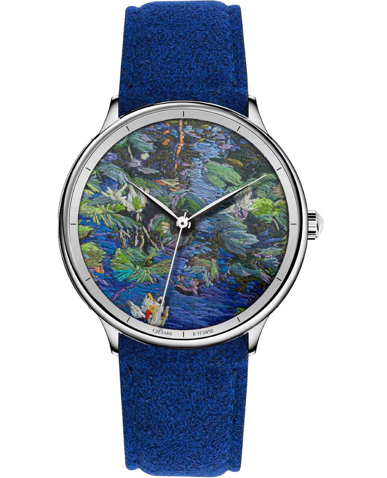 УЧЗ ART Этника 8721L-25 — эксклюзивные часы, объединяющие искусство традиционной вышивки и современное часовое мастерство. Корпус из нержавеющей стали, диаметром 40 мм, поставляется с синим кожаным натуральным итальянским ремешком со стандартной застежкой.Уникальность модели — в детальной фактурной вышивке на циферблате, выполненной мастером Владимиром Кузнецовым. За точность хода кварцевый механизм. Циферблат защищён прочным сапфировым стекломСапфировое стеклоПрочный и надёжный материал из кристалла сапфира синтетического происхождения, характеризующийся особой твёрдостью и устойчивостью к царапинам и повреждениям., а водозащита 3 ATM (30 метров) оберегает часы от брызг и дождя. Идеальный выбор для ценителей уникального дизайна, ручной работы и высокого качества. Дополнительный белый ремешок в комплекте.