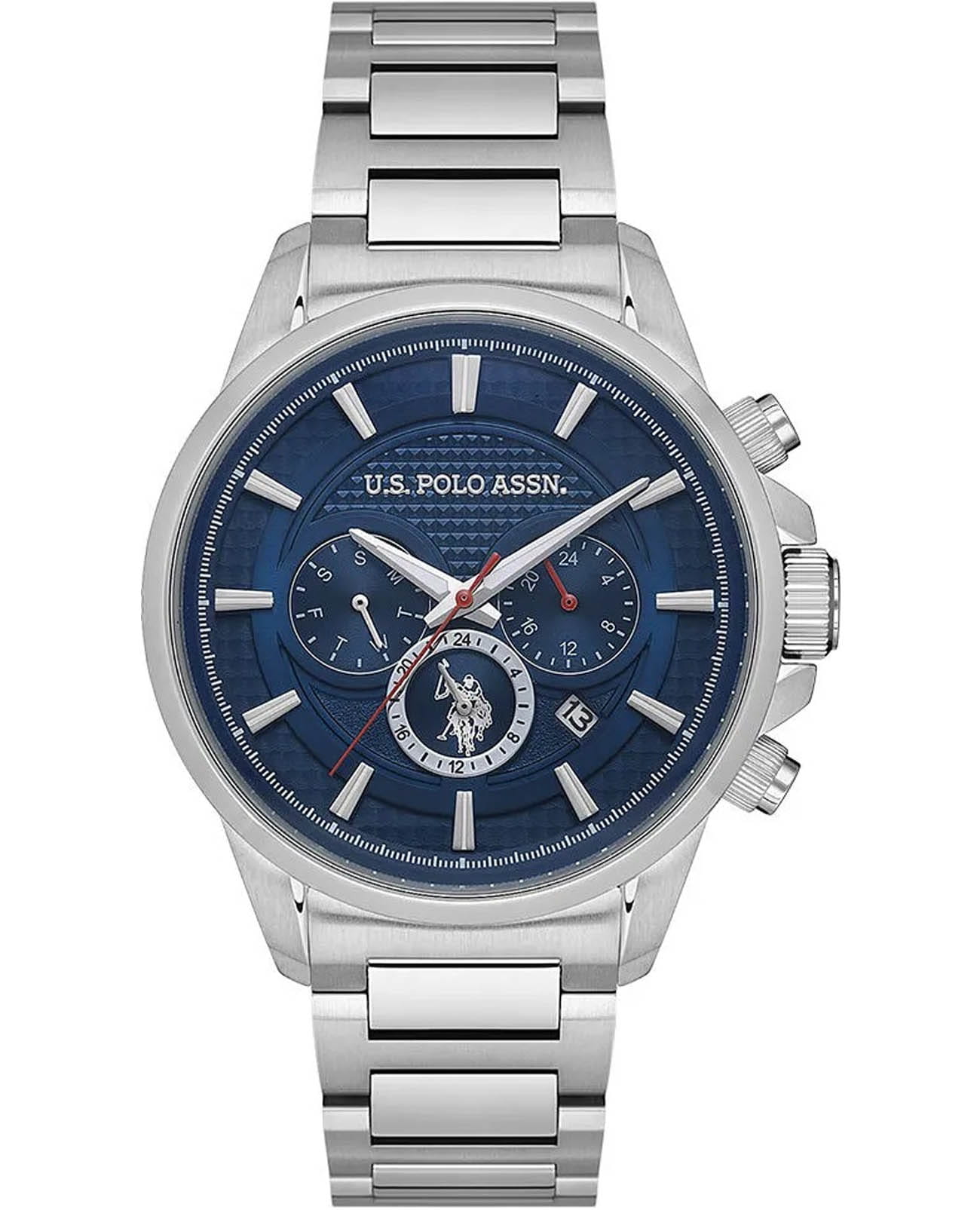 Мужские элегантные американские часы U.S. Polo Assn. Crossing USPA1084-02 обладают кварцевым механизмом с высокой точностью. Минеральное стеклоМинеральное стеклоМинеральное стекло представляет собой искусственно выращенный минерал кварца. Такое стекло отличается особой устойчивостью к повреждениям и царапинам. Уступает по некоторым качествам сапфировому стеклу. устойчивое к появлению царапин, обладающее высокой прозрачностью. Изысканный корпус изготовлен из нержавеющей стали. Серебристые центральные часовая, минутная и секундная стрелки. 24-х часовой формат времени, день недели вынесены на отдельный циферблат. Часы оснащены люминесцентным покрытиемЛюминесцентное покрытиеПозволяет считывать показания времени в темноте. Производители наносят на стрелки, часовые индексы, безель или поверхность циферблата светонакопительный состав, дающий холодное свечение., обеспечивающим хорошую читаемость в темноте. Класс водозащиты: 50 метров, позволит защитить корпус от случайных брызг или капель дождя. Стальной браслет с раскладной застёжкойРаскладная застёжкаТакой тип застёжки используется только на браслетах из металла. Она никогда не раскрывается полностью, происходит разделение на 2 и более частей. Раскладывающая застёжка снизит вероятность потери часов к минимуму. обеспечивает комфорт и удобство в использовании, добавляя завершающий штрих к этому стильному и высокоэффективному аксессуару. Окошко даты находится в положении между 4 и 5 часами. Это практичный и стильный инструмент для активной повседневности, объединяющий точный механизм и удобство.