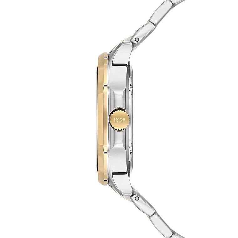 Мужские элегантные американские часы U.S. Polo Assn. Fundamental USPA1091-04 обладают кварцевым механизмом с высокой точностью. Минеральное стеклоМинеральное стеклоМинеральное стекло представляет собой искусственно выращенный минерал кварца. Такое стекло отличается особой устойчивостью к повреждениям и царапинам. Уступает по некоторым качествам сапфировому стеклу. устойчивое к появлению царапин, обладающее высокой прозрачностью. Изысканный корпус изготовлен из нержавеющей стали с неподвижным безелемБезельВнешний ободок, закрепляющий стекло. В спортивных часах так называется поворотное кольцо с делениями на циферблате, выполняет роль таймера – замеряет отрезки времени на шкале. Неподвижный безель – элемент декора. Однонаправленно вращающийся безель на дайверских часах позволяет фиксировать моменты погружения и выныривания на поверхность. с PVD-покрытиемPVDУльтратонкое покрытие наносится в технике вакуумного напыления, сочетает в себе нитрид титана особой прочности со слоем золота или оксида хрома. Несёт в себе декоративную или защитную функцию.. Стильные центральные часовая, минутная и секундная стрелки. Стрелки и метки оснащены люминесцентным покрытиемЛюминесцентное покрытиеПозволяет считывать показания времени в темноте. Производители наносят на стрелки, часовые индексы, безель или поверхность циферблата светонакопительный состав, дающий холодное свечение., обеспечивающим хорошую читаемость в темноте. Класс водозащиты: 50 метров, позволит защитить корпус от случайных брызг или капель дождя. Стальной браслет с PVD-покрытиемPVDУльтратонкое покрытие наносится в технике вакуумного напыления, сочетает в себе нитрид титана особой прочности со слоем золота или оксида хрома. Несёт в себе декоративную или защитную функцию. с раскладной застёжкойРаскладная застёжкаТакой тип застёжки используется только на браслетах из металла. Она никогда не раскрывается полностью, происходит разделение на 2 и более частей. Раскладывающая застёжка снизит вероятность потери часов к минимуму. обеспечивает комфорт и удобство в использовании, добавляя завершающий штрих к этому стильному и высокоэффективному аксессуару. Окошко даты находится в положении 3 часов. Это практичный и стильный инструмент для активной повседневности, объединяющий точный механизм и удобство.