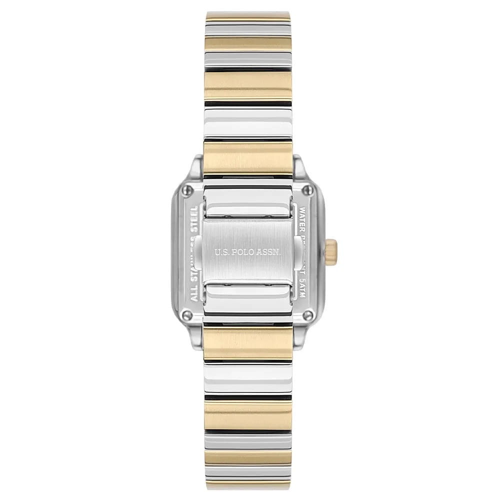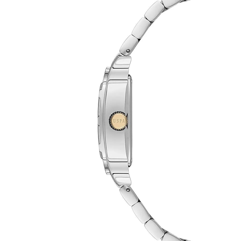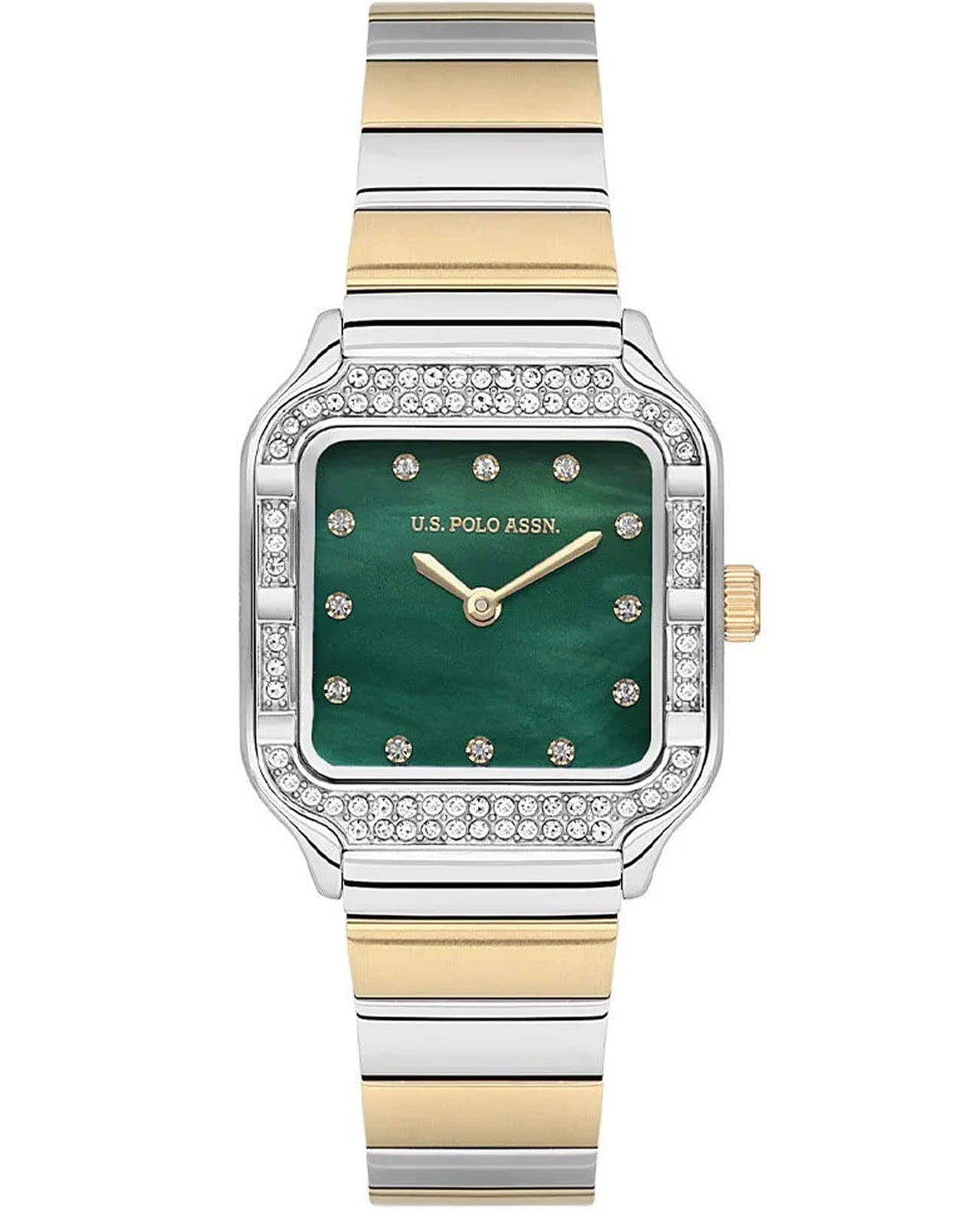 Женские элегантные часы U.S. Polo Assn. Stile USPA2100-04, кварцевый механизм с высокой точностью. Минеральное стеклоМинеральное стеклоМинеральное стекло представляет собой искусственно выращенный минерал кварца. Такое стекло отличается особой устойчивостью к повреждениям и царапинам. Уступает по некоторым качествам сапфировому стеклу. устойчивое к появлению царапин, обладающее высокой прозрачностью. Изысканный корпус изготовлен из нержавеющей стали с безелемБезельВнешний ободок, закрепляющий стекло. В спортивных часах так называется поворотное кольцо с делениями на циферблате, выполняет роль таймера – замеряет отрезки времени на шкале. Неподвижный безель – элемент декора. Однонаправленно вращающийся безель на дайверских часах позволяет фиксировать моменты погружения и выныривания на поверхность. с кристаллами. Лаконичные центральные часовая, минутная стрелки. Водонепроницаемость 5 АТМ позволяет использовать часы в повседневных условиях — при мытье рук или под лёгким дождём. Браслет выполнен из стали с IP-покрытиемIP-покрытиеМетод ионного напыления. Демонстрирует повышенную устойчивость к истиранию, окислению и химическим веществам. Под воздействием высокого давления и температуры около 1500°C молекулы металла надёжно соединяются с частицами корпуса часов. и оснащён раскладной застёжкойРаскладная застёжкаТакой тип застёжки используется только на браслетах из металла. Она никогда не раскрывается полностью, происходит разделение на 2 и более частей. Раскладывающая застёжка снизит вероятность потери часов к минимуму., обеспечивающей комфорт и уверенную фиксацию на запястье, а также добавляя завершающий штрих к этому стильному аксессуару. Циферблат с кристаллами подчёркивает изысканный характер часов, создавая универсальный образ, подходящий как для повседневных ситуаций, так и для особых случаев.