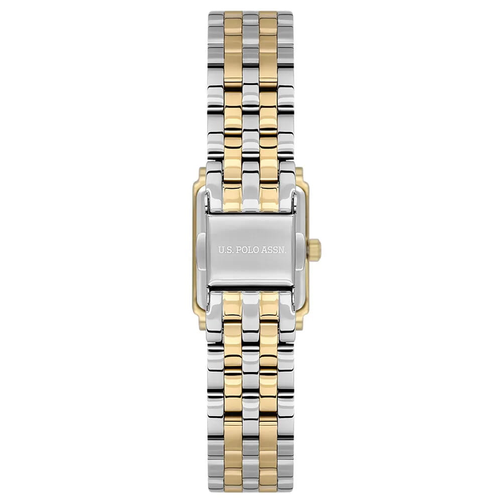 Женские наручные часы U.S. Polo Assn. Stile USPA2107-05 — это стильный и лаконичный аксессуар, выполненный в форме квадрата. Модель изготовлена из стали с IP-покрытиемIP-покрытиеМетод ионного напыления. Демонстрирует повышенную устойчивость к истиранию, окислению и химическим веществам. Под воздействием высокого давления и температуры около 1500°C молекулы металла надёжно соединяются с частицами корпуса часов., придающий благородный внешний вид и устойчивость к царапинам. Циферблат с кристаллами дополнен лаконичными центральными часовой и минутной стрелками. Защиту циферблата обеспечивает минеральное стеклоМинеральное стеклоМинеральное стекло представляет собой искусственно выращенный минерал кварца. Такое стекло отличается особой устойчивостью к повреждениям и царапинам. Уступает по некоторым качествам сапфировому стеклу., устойчивое к мелким повреждениям. Часы оснащены кварцевым механизмом, гарантирующим точность и минимальное обслуживание. Водонепроницаемость 3 АТМ позволяет использовать часы в повседневных условиях — при мытье рук или под лёгким дождём. Браслет выполнен из стали с IP-покрытиемIP-покрытиеМетод ионного напыления. Демонстрирует повышенную устойчивость к истиранию, окислению и химическим веществам. Под воздействием высокого давления и температуры около 1500°C молекулы металла надёжно соединяются с частицами корпуса часов. и оснащён раскладной застёжкойРаскладная застёжкаТакой тип застёжки используется только на браслетах из металла. Она никогда не раскрывается полностью, происходит разделение на 2 и более частей. Раскладывающая застёжка снизит вероятность потери часов к минимуму., обеспечивающей комфорт и уверенную фиксацию на запястье. Толщина корпуса составляет 7 мм, а его размер 19 мм, что делает часы компактными и удобными в носке. Эти часы станут универсальным аксессуаром для уверенных в себе женщин, которые ценят сочетание стиля, качества и эстетики — идеальный выбор для повседневного образа и торжественных случаев.