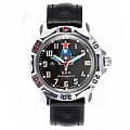 Российские механические часы. Корпус из высокопрочной стали с антикоррозийными свойствами. Ремешок из натуральной кожи черного цвета. Черной фон циферблата с арабскими цифрами и символикой ВДВ. Водонепроницаемость часов составляет 3 ATM. Минеральное стекло, устойчивое к появлению царапин.